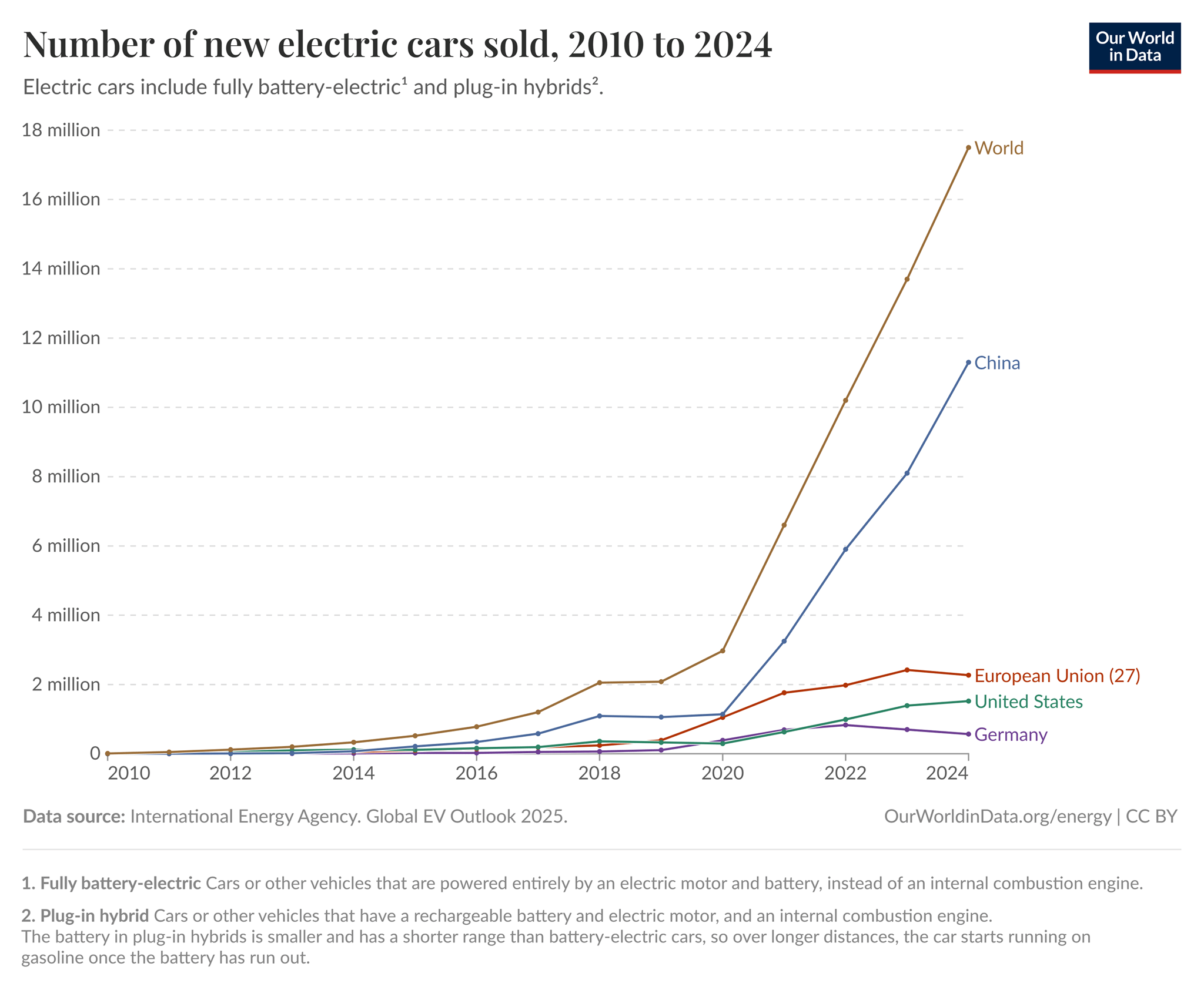 Quelle: Hannah Ritchie (2024) - “Tracking global data on electric vehicles” Published online at OurWorldinData.org. Retrieved from: 'https://ourworldindata.org/electric-car-sales' [Online Resource]