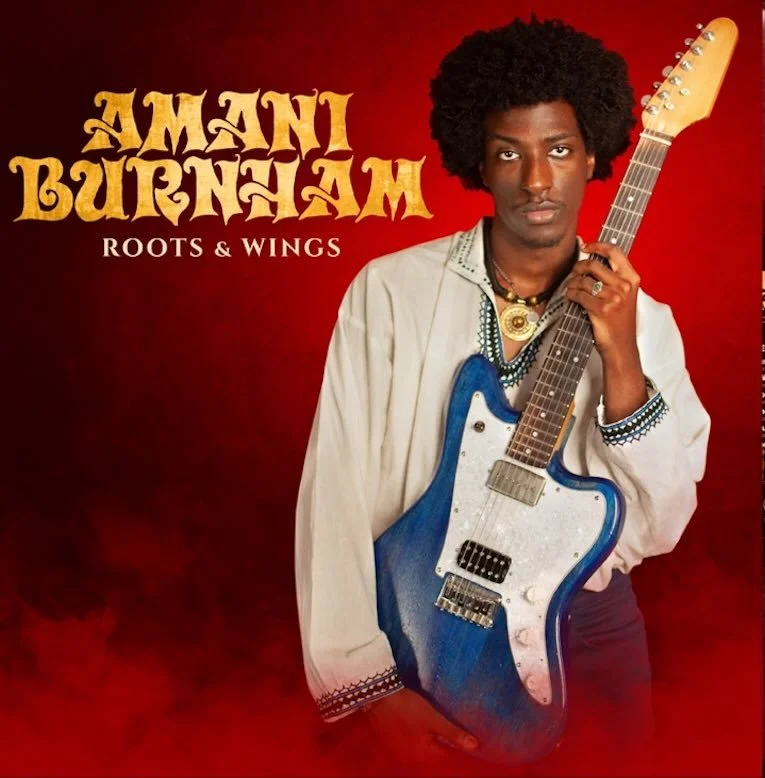Mit nur 20 Jahren legt er Roots & Wings vor, das beeindruckende Debüt von Amani Burnham. Sein Gitarrenspiel und Gesang erinnerten mich beim ersten Hören extrem stark an Jimi Hendrix: feurige Soli, rotziger, verzerrter Ton, reifes Vibrato und kosmische Klangwelten.