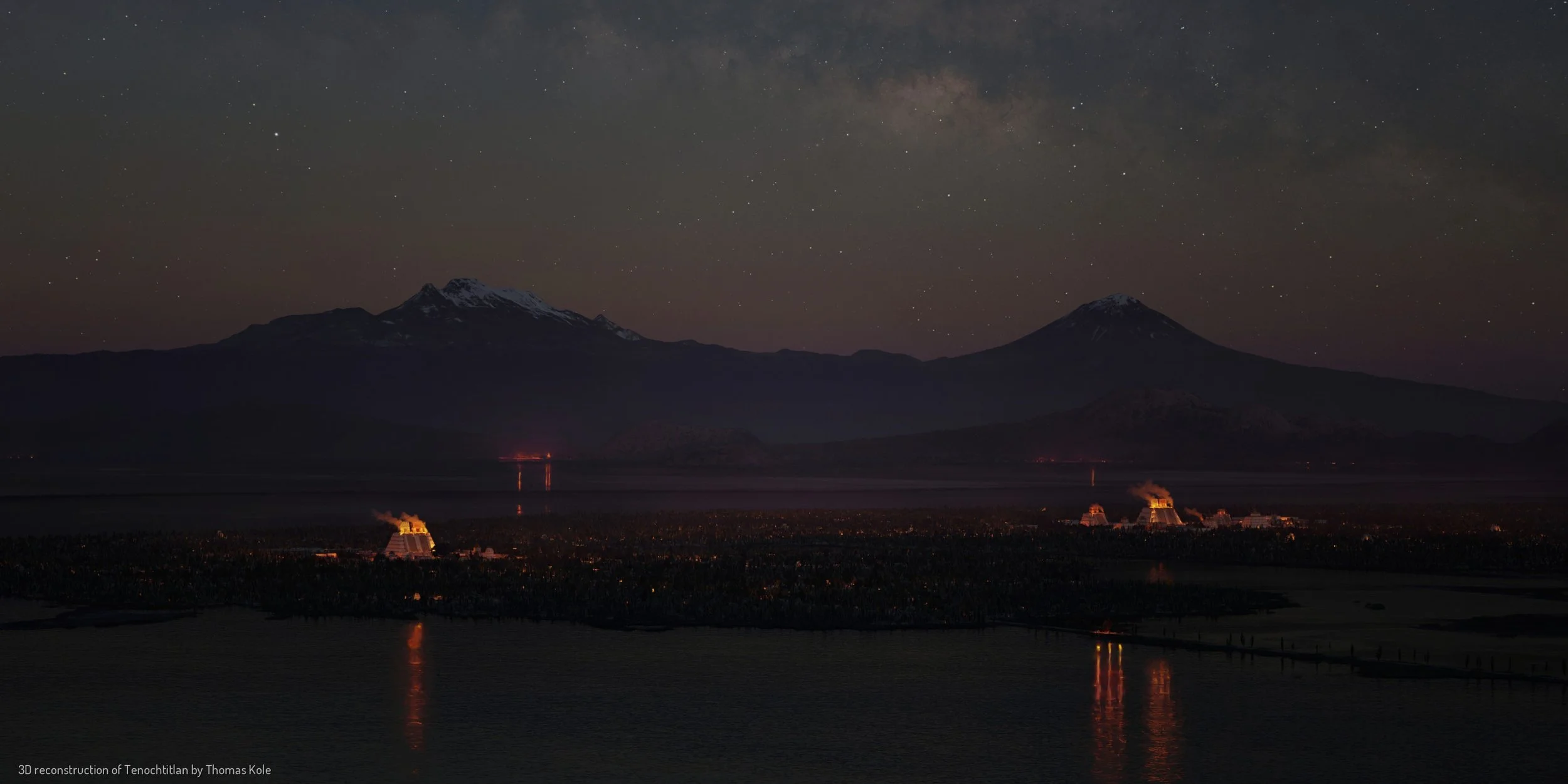 Tenochtitlan wurde auf Inseln im Texcoco-See erbaut und durch Dämme und Kanäle miteinander verbunden. Was wie eine Fantasiestadt wirkt, war einst eines der größten urbanen Zentren der Welt.