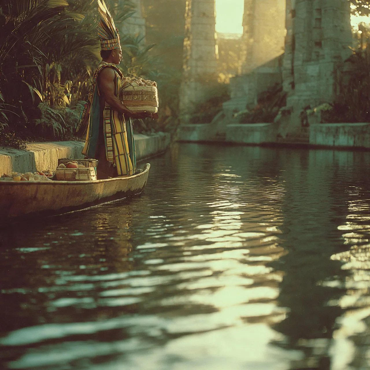 Tenochtitlan war nicht nur monumental, sondern hochfunktional. Märkte, Kanäle und Chinampas versorgten und organisierten eine Megacity.